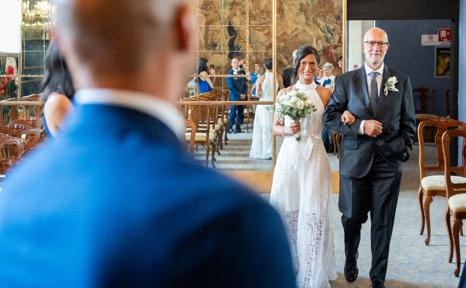 Il matrimonio di Irene e Antonio fu una giornata magica e indimenticabile, celebrato con eleganza e stile nel sontuoso Palazzo Reale di Milano. L'atmosfera regale del palazzo ha aggiunto un tocco di nobiltà e raffinatezza al loro grande giorno.